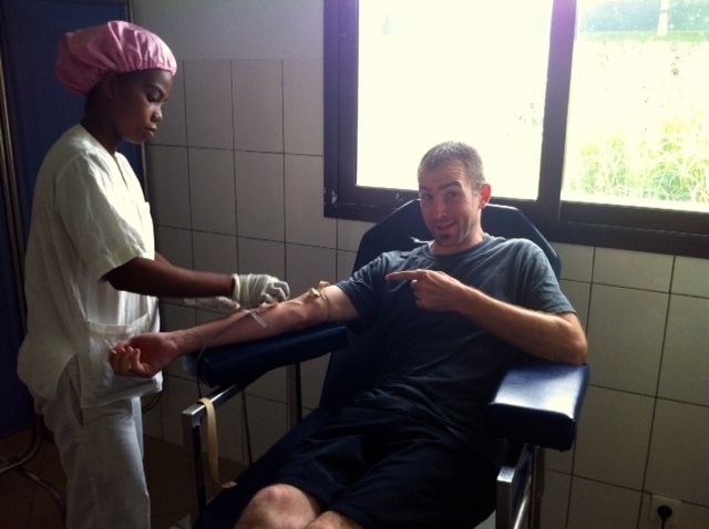 Two days later, Jamie, Danielle, Neal and I all headed into town and up to the hospital. We checked into the blood bank– an actual building that is pretty nice for African standards. I know it certainly beats the dilapidated dark musty room that used to be home to the “blood bank” at the same hospital.