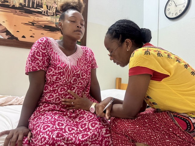 Genotine (pictured on the right) has welcomed all four of her daughters at the Sarobidy Maternity Center.